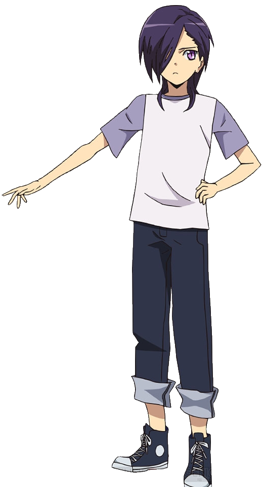 In human form, Urushihara appears as a short, skinny boy in his late teens. He has fair skin and floppy, dark purple hair that is longer than average, with a long fringe and several strands that reach just past his shoulders. His eyes are violet. He usually wears a casual, white, short-sleeved top with light purple sleeves, black trousers that are rolled up at the bottom, and a pair of blue and white Converses. He also wears two purple piercings on each ear.